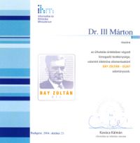 2004. X. 21. - Az Informatikai és Hírközlési Minisztériumban az 1956. október 23-i Forradalom 48. évfordulója alkalmából rendezett ünnepélyen Kovács Kálmán miniszter dr. Ill Márton csillagászt, az Űrkutatási Tudományos Tanács alapító tagját, az űrkutatásban végzett kimagasló munkájáért, valamint életműve elismeréseként Bay Zoltán díjban részesítette. A Miniszter Úr által 2004-ben alapított díj adományozására első alkalommal került sor.