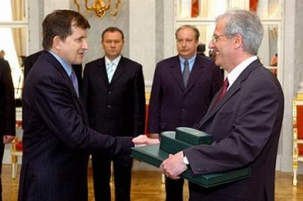 2006. II. 15. - Dr. Almár Iván Bay Zoltán-díja - Kovács Kálmán informatikai és hírközlési miniszter az Űrkutatási Tudományos Tanács 2006. február 13-i ülésén Bay Zoltán-díjat adott át dr. Almár Ivánnak, az ŰTT elnökének eddigi, az űrtevékenység területén végzett eddigi kimagasló tevékenységéért.  Kovács Kálmán informatikai és hírközlési miniszter Bay Zoltán-díjat ad át dr. Almár Ivánnak, az ŰTT elnökének. Előtérben Lotz Károly korábbi űrtevékenységet felügyelő miniszter.