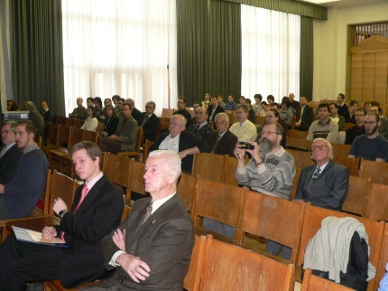 Második előadóként dr. Both Előd a magyar űrtevékenység elmúlt egy évét értékelte. A MŰI igazgatója szólt a PECS Megállapodás meghosszabbításáról, az EU 7. K+F Keretprogramját értékelve pedig elmondta, hogy a hazai pályázók ugyan az űrtudomány különböző területein a várakozásokon felül teljesítettek, ám a Kopernikus (GMES) földmegfigyelési programról ugyanez már nem mondható el.  Az Űrnap közönsége (a képen dr. Both Előd tartja meg előadását)A szünetet követően az elmúlt esztendő legfontosabb eseményeiről, terveiről hallhattak egy-egy előadást a résztvevők. Lábó Eszter, az Országos Meteorológiai Szolgálat Távérzékelési Osztályának munkatársa Magyarország és az EUMETSAT kapcsolatát mutatta be, emellett felhívta a figyelmet arra, hogy a magyar űripar is komoly lehetőségekhez jut az ország EUMETSAT-hoz történt csatlakozásával, hiszen így akár a geostacionárius vagy alacsony Föld körüli pályán keringő holdak