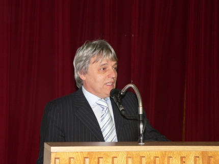 Nemes-Nagy József dékánhelyettes úr köszönti az Űrnap résztvevőit