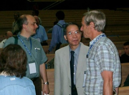 Hirabayashi professzor (középen) a japán VSOP űr VLBI program vezetője az URSI kongresszusán Új Delhiben
