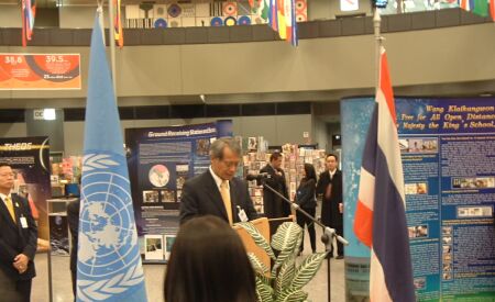 2007. II. 15. - Thai űrkutatási kiállítás az ENSZ-ülésen - Az ENSZ Világűrbizottság Tudományos és Technikai Albizottságának 44. ülésszakán Thaiföld kiállításon mutatta be saját űrtevékenységét. A kiállítást Thaiföld az ENSZ-hez delegált bécsi nagykövete, valamint prof. dr. Jongjut Jutalongsz (Yonyuth Yuthalongs) a Thaiföldi Királyság tudományos és technológiai minisztere nyitotta meg. A megnyitón beszédet mondott Mazlan Othman, az Albizottság elnöke, valamint dr. Sergio Camacho-Lara, az ENSZ Világűrirodájának (UN Office for Outer Space Affairs) igazgatója is. A thai űrhivatalként működő GISTDA-t (Geo-Informatics and Space Technology Development Agency) dr. Szuvit Vibulsvest (Suvit Vibulsvesth) képviselte. A kiállítás megmutatta, Thaiföld a nemzetközi együttműködés során egyre több űralkalmazási programban vesz részt, elsősorban a katasztrófavédelem, oktatás, távközlés területén. Emellett Thaiföld jelenleg is dolgozik új műholdja, a tudományos feladatokat ellátó THEOS (Thailand Earth Observation System) fejlesztésén. A Thaiföldi Királyság 2004 óta tagja az ENSZ Világűrbizottságának.  prof. dr. Jongjut Jutalongsz thai tudományos és technológiai miniszter megnyitja a kiállítást A thai űrkiállítás a bécsi ENSZ Székház kerengőjében