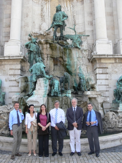 2007. VI. 4. - Megkezdődtek hazánk ESA-csatlakozási tárgyalásai - A környezetvédelmi és vízügyi miniszter nevében, Miniszterelnök úr 3/2007. (III. 9.) ME határozatban adott felhatalmazása alapján Kovács Kálmán államtitkár úr, a Magyar Űrkutatási Tanács elnöke felkérte az ESA-csatlakozási tárgyalások magyar delegációjának tagjait, hogy 2007. május 25-én sor kerülhessen a csatlakozási tárgyalások első fordulójára. A René Oosterlinck külkapcsolati igazgató által vezetett ESA-delegáció május 24-én érkezett Magyarországra Párizsból. Másnap 9:30-11 óra között Horvai Ferenc, a magyar delegáció tagja körbevezette a vendégeket a budai Várnegyeden, megtekintették a Királyi Palotát, a Mátyás-templomot és a Halászbástyát.  Az ESA tárgyalóküldöttsége a budai Királyi Palota kertjében, a "Mátyás Kútjánál"