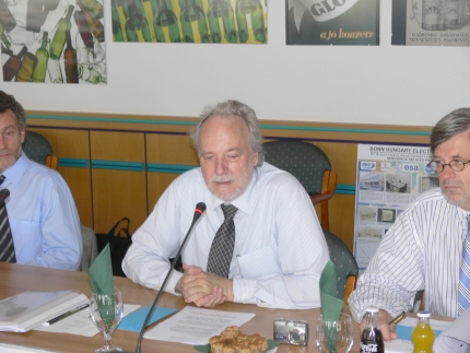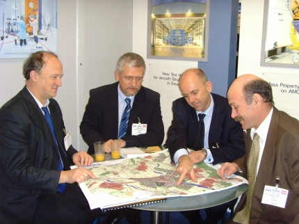 2007. IV. 5. - Űripari Tesztközpont épül Magyarországon - A Bonn-Magyarország Elektronikai Kft. március 27-29 között részt vett az "Aerospace Test Expo 2007" című kiállításon, ahol az európai repülőgép és űrszakma képviseltette magát. Ennek keretében a magyar űripari cég aláírt egy szándéknyilatkozatot az IABG (Industre Anlagen Betriebs Gesellschaft) a német űrkutatási tesztközpont tulajdonosi és igazgatói körével egy, a zsámbéki medencében felépítendő űrtechnológiai és tesztközpont felépítésére és üzemeltetésére vonatkozóan, mely technológiai lehetőséget teremt a magyar és a közép-kelet-európai űriparnak, hogy be tudjon kapcsolódni az európai űripar vérkeringésébe. Ugyanebben a témában a Talentis Csoport és a Bonn-Magyarország Elektronikai Kft. április 4-én 11 órakor sajtótájékoztatót tartott a Magyar Tudományos Akadémia Székházában. A sajtótájékoztatón bejelentették, a Talentis segítséget nyújt a tesztközpont felépítéséhez, melynek üzemeltetésében és felszerelésében a Bonn-Magyarország Elektronikai Kft. működne közre.  Az IABG standján a magyar tesztközpont tervezett elhelyezkedését tanulmányozza (balról jobbra) Földes József témavezető (Bonn-Mo. Kft.), Solymosi János marketing és űrtevékenységért felelős igazgató(Bonn-Mo. Kft.), Stefan Kubczyk elnökhelyettes (IABG) és dr. Kazy Károly ügyvezető igazgató (Bonn-Mo. Kft.)