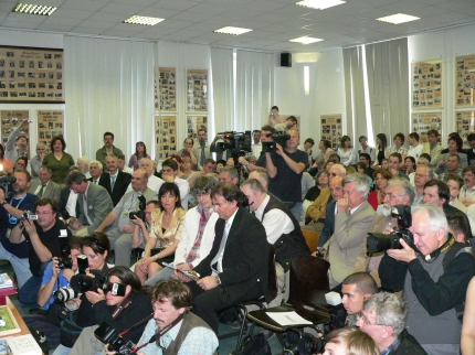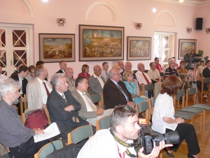 2007. VI. 5. - A magyar-szovjet közös űrrepülés 27. évfordulója - Farkas Bertalan magyar űrhajós felkészülésére, repülésére és tudományos kísérleteire emlékeztek a Szerekes Imre honvédelmi miniszter fővédnöksége mellett, a HM Hadtörténeti Intézet és Múzeum épületének dísztermében tartott emlékülés résztvevői. Az űrrepülés előkészítésben repülési szakértőként komoly szerepet vállaló dr. Szabó József nyugállományú vezérőrnagy, címzetes egyetemi tanár szervezőkészségét dícsérő rendezvényre a díszterem szinte teljes egészében megtelt érdeklődőkkel, az egykori repülésben részt vett kutatókkal és szakemberekkel, tisztekkel és újságírókkal. Az emlékülést dr. Holló József Ferenc nyá. altábornagy, az intézmény főigazgatója nyitotta meg, dr. Szeredi Péter, a Honvédelmi Minisztérium kabinetfőnöke mondott ünnepi köszöntőt.  Az emlékülés hallgatósága (részlet)