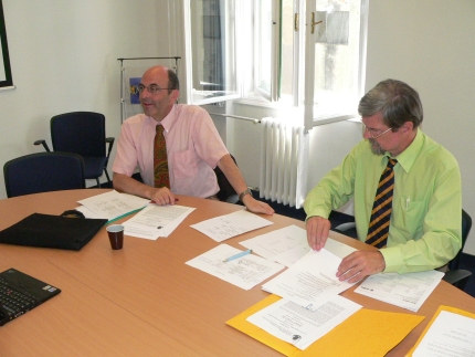 2007. VI. 5. - PECS beszámolók a MŰI-ben - Magyarország az ESA Európai Együttműködő Állama (ECS - European Cooperating State). Ennek keretében a magyar fél 2001-es gazdasági év szerinti évi egymillió eurót fizet be, melynek 93 %-át a kutatóhelyek és űripari cégek visszapályázzák. A páláyzatokat elnyertek évente számolnak be az ESA-nak az elmúlt évben végzett munkájukért, melyeket az ESA valamely programja keretében vagy annak számára végeztek. Hazánkban évente két ilyen beszámolóra kerül sor.  Bernard Zufferey PECS-felelős és dr. Both Előd, a MŰI igazgatója a májusi beszámolón a MŰI-ben.