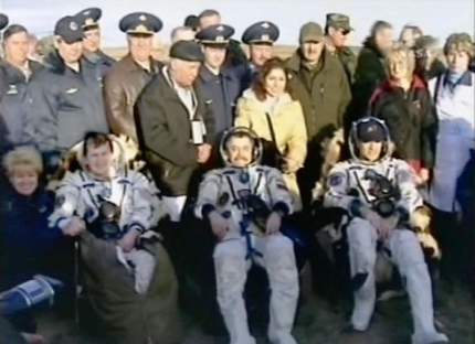 2007. IV. 25. - Simonyi újra a Földön - Időjárási okokból a tervezettnél egy nappal később, április 21-én, közép-európai idő szerint 12:30-kor, Kazahsztánban Földet ért Simonyi Károly űrturista, Michael Lopez-Alegria és Mihail Tyurin amerikai és orosz űrhajósok társaságában a Szojuz TMA-9 űrhajóval. Simonyi a Magyar Űrkutatási Iroda kérésére az Orosz Űrügynökség hozzájárulásával vállalta, hogy a Nemzetközi Űrállomáson magyar méréseket is végez a Pille sugárdózismérővel. Kazahsztánból Simonyi és társai az oroszországi, Moszkva melletti Csillagvárosba utaztak, ahol 22-én megkezdték a rehabilitációt.  Simonyi Károly, Mihail Tyurin és Michael Lopez-Alegria újra a Földön