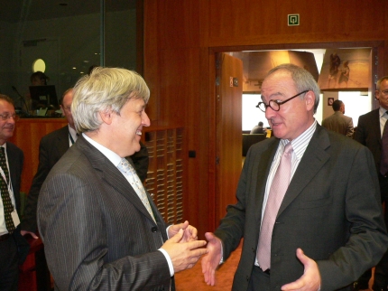 Kovács Kálmán államtitkáron kívül a magyar delegáció tagja volt még dr. Szendrődi László és dr. Erényi István, valamint dr. Both Előd, a MŰI igazgatója, a PECS Bizottság elnöke. Az Űrtanács ülése előtt Kovács Kálmán államtitkár úr rövid megbeszélést folytatott Jean-Jacques Dordain úrral, az Európai Űrügynökség főigazgatójával. Mint arról honlapunkon már többször beszámoltunk, Magyarország deklarált célja, hogy az ESA teljes jogú tagjává váljon. Hazánk már 2005-ben hivatalosan benyújtotta az ESA-nak tagfelvételi kérelmét. A 4. Űrtanácson történtekkel bővebben is foglalkozik az ESA cikke, valamint az EU űrpolitikai honlapja.  Az Űrtanács ülésének helyet adó brüsszeli EU-épület