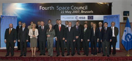 Az Európai Űrprogram alapjai az EU 7. Keretprogramjában folyó programokat, az ESA programokat és kutatásait, az EUMETSAT projektjeit és a nemzeti kutatásokat foglalja egységes keretbe.  A 4. Űrtanács delegációvezetőinek csoportképe (Forrás és nagyobb méret: ESA)