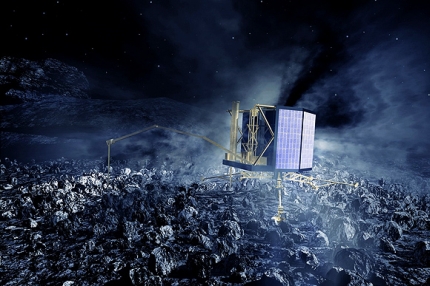 Terepi vizsgálatok az üstökösmag felszínén (illusztráció)