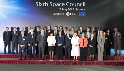 2009. VI. 22. - Ülésezett az Űrtanács - 2009. május 29-én hatodik alkalommal ülésezett az EU és ESA tagállamainak űrtevékenységet felügyelő minisztereiből álló Űrtanács. Az ülésen a miniszterek elfogadták azt a dokumentumot, amely megerősíti, hogy az űrkutatásra fordított pénzek a gazdasági válság idején is megtérülnek, s ezért az űrköltségvetést nem csökkentenék. Sőt, az Űrtanács határozata szerint épp az űrkutatás az egyik olyan terület, amely segíthet kilábalni a válságból. Az ülés levezető elnöke Miroslava Kopicová cseh oktatási miniszter, az EU Versenyképességi Tanácsának elnöke, és Mariastella Gelmini, az ESA Miniszteri Tanácsának elnöke volt. A magyar delegációt Varga István, az űrkutatást is felügyelő nemzeti fejlesztési és gazdasági miniszter vezette. Az Űrtanácsról részletesen az ESA sajtóközleményében olvashatnak.  A 6. Űrtanácson résztvevő miniszterek csoportképe