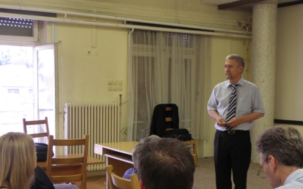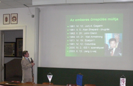 A rádiókapcsolat előtt dr. Both Előd az űrturizmusról tartott előadást