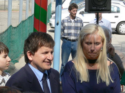 Simonyi Károly és neje, Lisa Persdotter, az ünnepélyes zászlófelvonás alatt