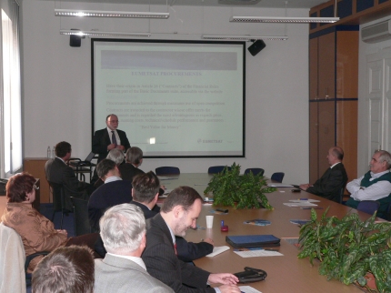 2009. I. 23. - Az EUMETSAT Információs Napon történtek - Az EUMETSAT Szervezethez (Meteorológiai Műholdak Hasznosításának Európai Szervezete) történt tavalyi csatlakozásunk óta megérett az idő arra, hogy a hazai pályázók révén a Magyarország által befizetett tagdíj megtérüljön, a hazai egyetemek, kutatóhelyek és űripari, informatikai cégek sikeres pályázatokkal induljanak az EUMETSAT-tendereken. Ennek érdekében az Országos Meteorológiai Szolgálat a Magyar Űrkutatási Iroda közreműködésével, 2008. január 19-én információs napot szervezett, elsősorban az ipari pályázók részére. A rendezvényen az EUMETSAT pályázati rendszeréről, a költségelszámolás lehetőségeiről esett szó. Fontos kihangsúlyozni, hogy EUMETSAT éves tagdíjunk kb. hazánk PECS befizetésével egyezik meg, tehát visszapályázása jelentős mértékben hozzájárulhat a kutatóhelyi, űripari hálózat fejlesztéséhez, bővítéséhez. Ugyanakkor az EUMETSAT-nál nem érvényesül az ESA két jellegzetessége: a kis- és középvállalkozások kiemelt támogatása (vagyis az EUMETSAT-nál a kutatóhelyek és a KKV-k egyenlő esélyekkel indulnak, megkülönböztetés nélkül), illetve a földrajzi visszatérítés elve. Utóbbi azt jelenti, hogy az EUMETSAT nem vállal garanciát arra, hogy a befizetett magyar tagdíj pályázatok révén visszatér az országba, ugyanakkor felső plafont sem jelent, azaz ennél nagyobb összeg sikeres elnyerésére is lehetőség van.