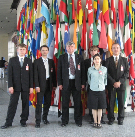 Lengyel egyetemisták az ENSZ-ben (középen Piotr Wolansky professzor, a Lengyel Tudományos Akadémia Űrkutatási Bizottsága részéről)