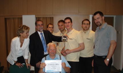 A képen a csapat néhány tagja, valamint az Astrium képviselői láthatóak, miután átadták a támogatást jelképező csekket