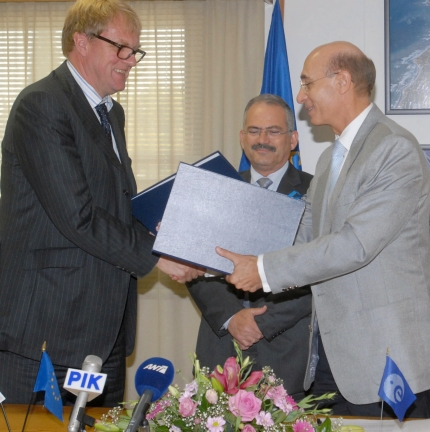 2009. IX. 1. - Ciprus együttműködési megállapodást kötött az ESA-val - 2009. augusztus 27-én együttműködési megállapodást kötött Ciprus az Európai Űrügynökséggel. Az ESA nevében Peter Hulsroj, az ESA külkapcsolatokért felelős igazgatója, a Ciprusi Köztársaság nevében pedig Michael Constantinides ciprusi hírközlési államtitkár látta el aláírásával a dokumentumot. Az ünnepélyes eseményre Nicosiában került sor, azon jelen volt Nicos Nicolaides ciprusi hírközlési miniszter is. Ciprussal 2005 óta folytak tárgyalások az együttműködés lehetséges formáiról. A megállapodás lehetővé teszi a ciprusiak számára a részvételt az ESA bizonyos programjaiban, ám messze nem ad annyi lehetőséget, mint a PECS Megállapodás. Várhatóan néhány év múlva a ciprusi kormányzat dönt a PECS Megállapodás aláírásáról, illetve a teljes jogú tagságról is. Az elmúlt években az ESA Törökországgal, Észtországgal, Ukrajnával, Szlovéniával és Lettországgal írt alá Együttműködési Megállapodást. A következő ország talán még az idén, várhatóan Litvánia lesz. A PECS Megállapodást hamarosan Észtország is aláírja.  Peter Hulsroj igazgató és Michael Constantinides államtitkár az aláírást követően