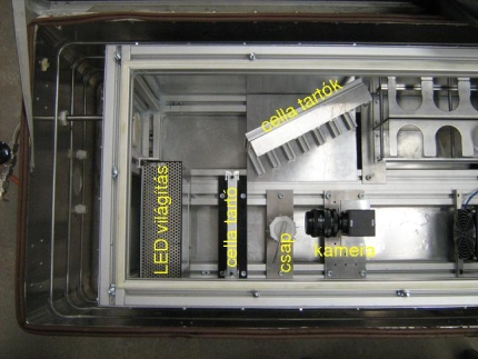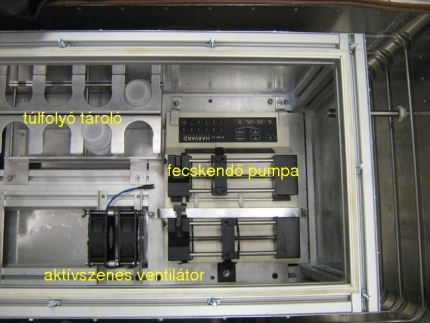 2011 januárjában közölték az Anne De Wit (Brüsszel) koordinálásával működő nemzetközi csoportunkkal, hogy részt vehetünk az ESA 56. parabolarepülési kampányában, melynek lebonyolítása a magyar csapat feladata volt. Decemberben kaptuk a következő értesítést a menetrendről és a szükséges dokumentációkról. A részletek helyszíni megbeszélésére 2012 januárjában került sor. Végső célunk a Marangoni instabilitás tanulmányozása reaktív közegben, melyben a sűrűségkülönbség okozta mozgás MASER rakétában közel hat percig kiküszöbölhető. Jelen repüléssel nemcsak a kísérleti technikákat teszteltük, hanem a periodikus gravitációs moduláció hatását is tanulmányoztuk. A repülésig azonban az adminisztrációs teendőkön túl is sok feladatunk volt, hogy a biztonsági előírásoknak megfeleljünk. Ehhez olyan kettős falú alumínium konténert terveztünk (lásd ábra), amely a repülőút alatt zárva van, de polikarbonát ablakon át belenézhetünk, valamint a kívánt műveleteket a dobozhoz rögzített gumikesztyűkkel elvégezhetjük. A maximális biztonság érdekében a termékként keletkező jód esetleges légtérbe kerülésének megakadályozására aktív szenes tölteten keresztül áramoltattuk a levegőt a doboz belsejében. A konténert a gép szellőztető rendszerére kötöttük, valamint pelenkával béleltük az esetleges szivárgó vizes oldatok gyors megkötésére.